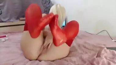 Фетишь девушка в красных чулках показывает пятки indian porn